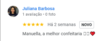 Com mais de 6 anos de experiência, Manuella Veras transformou sua paixão pela confeitaria em arte. Seu talento e dedicação se refletem em cada criação, conquistando uma coleção de depoimentos de clientes encantados com a beleza e o sabor irresistível de seus doces